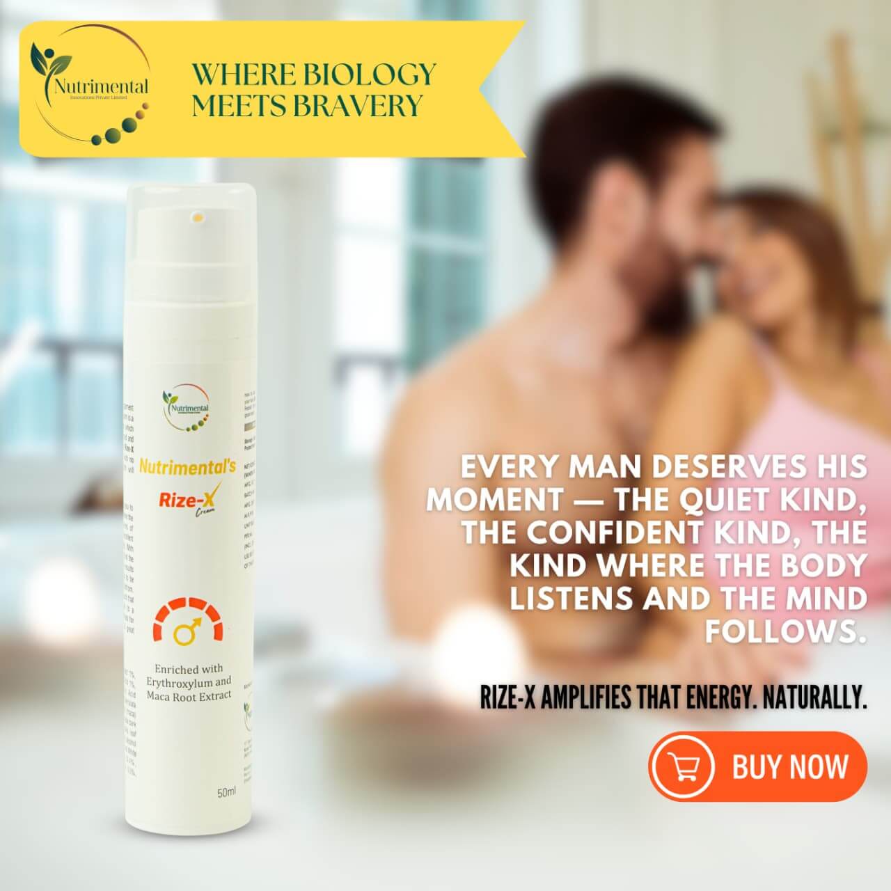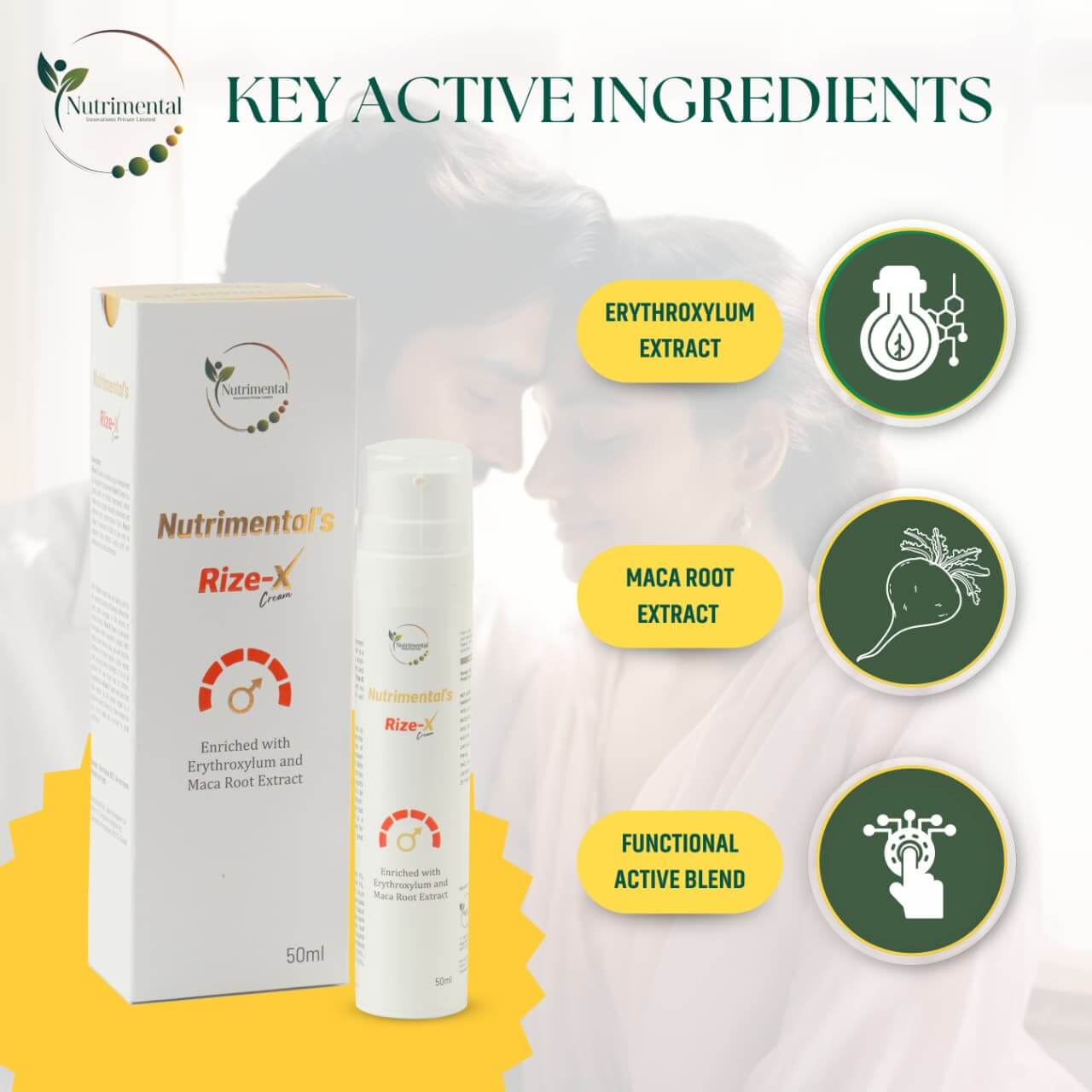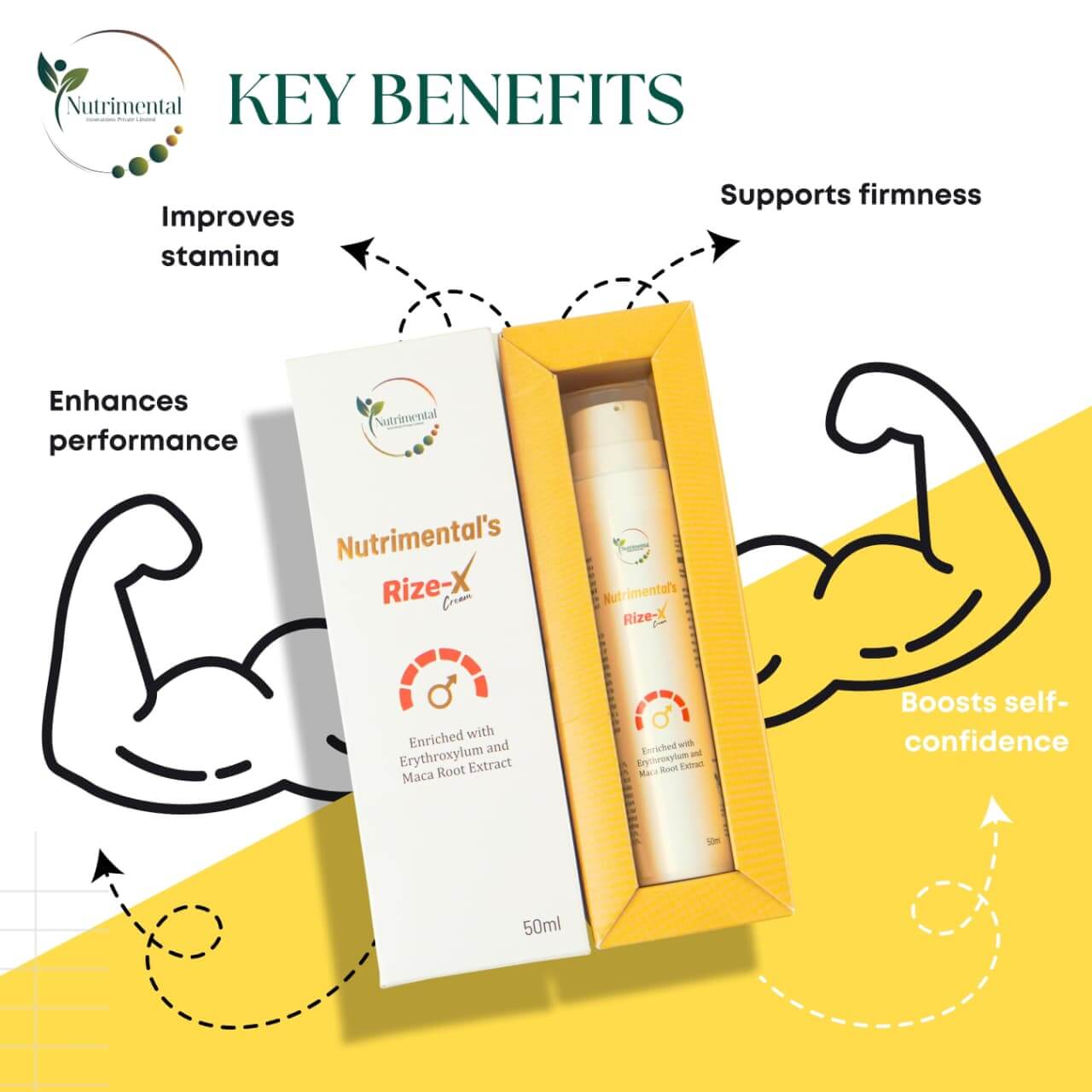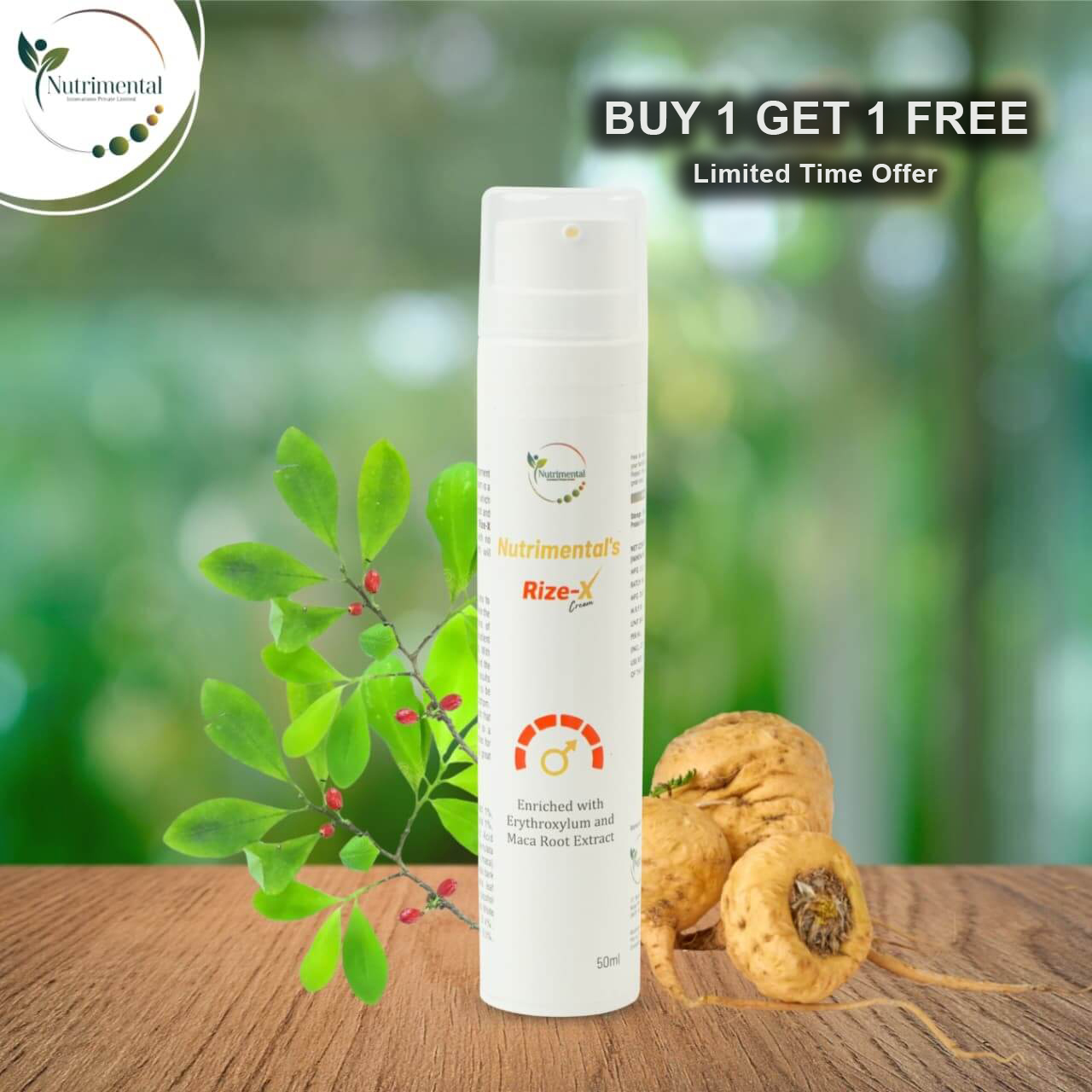 Rize-X Cream is a topical male enhancement product formulated with a blend of natural extracts to help manage symptoms of erectile dysfunction by potentially improving blood flow and reducing stress.