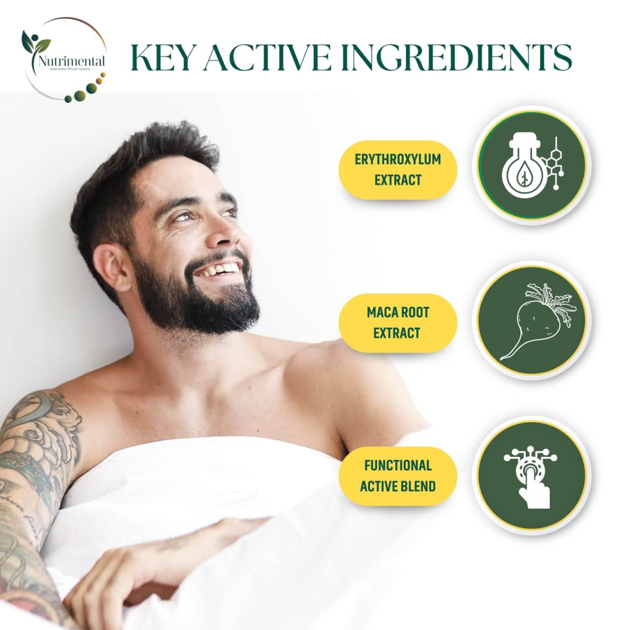 – L-Arginine:An amino acid that is a precursor to nitric oxide (NO). Nitric oxide helps in vasodilation (widening of blood vessels), which improves blood flow to the penile tissue, a crucial factor for achieving and maintaining an erection.